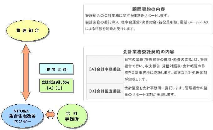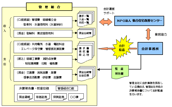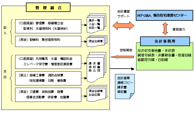 当センターでは、管理組合が主体となり、適正に運営することができる、財務会計の支援体制を整備しています。